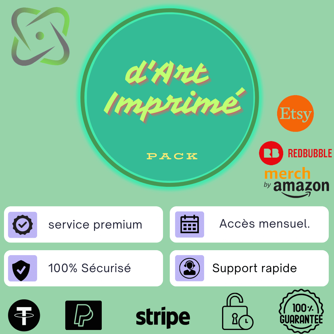 Bienvenue dans le Pack d’Art Imprimé, votre source ultime pour libérer votre créativité et démarrer votre entreprise d’impression sur demande avec succès. Avec une collection soigneusement sélectionnée d’outils, logiciels et ressources exclusives, ce pack est conçu pour vous aider à créer des designs uniques et à les imprimer sur une variété de produits personnalisés.